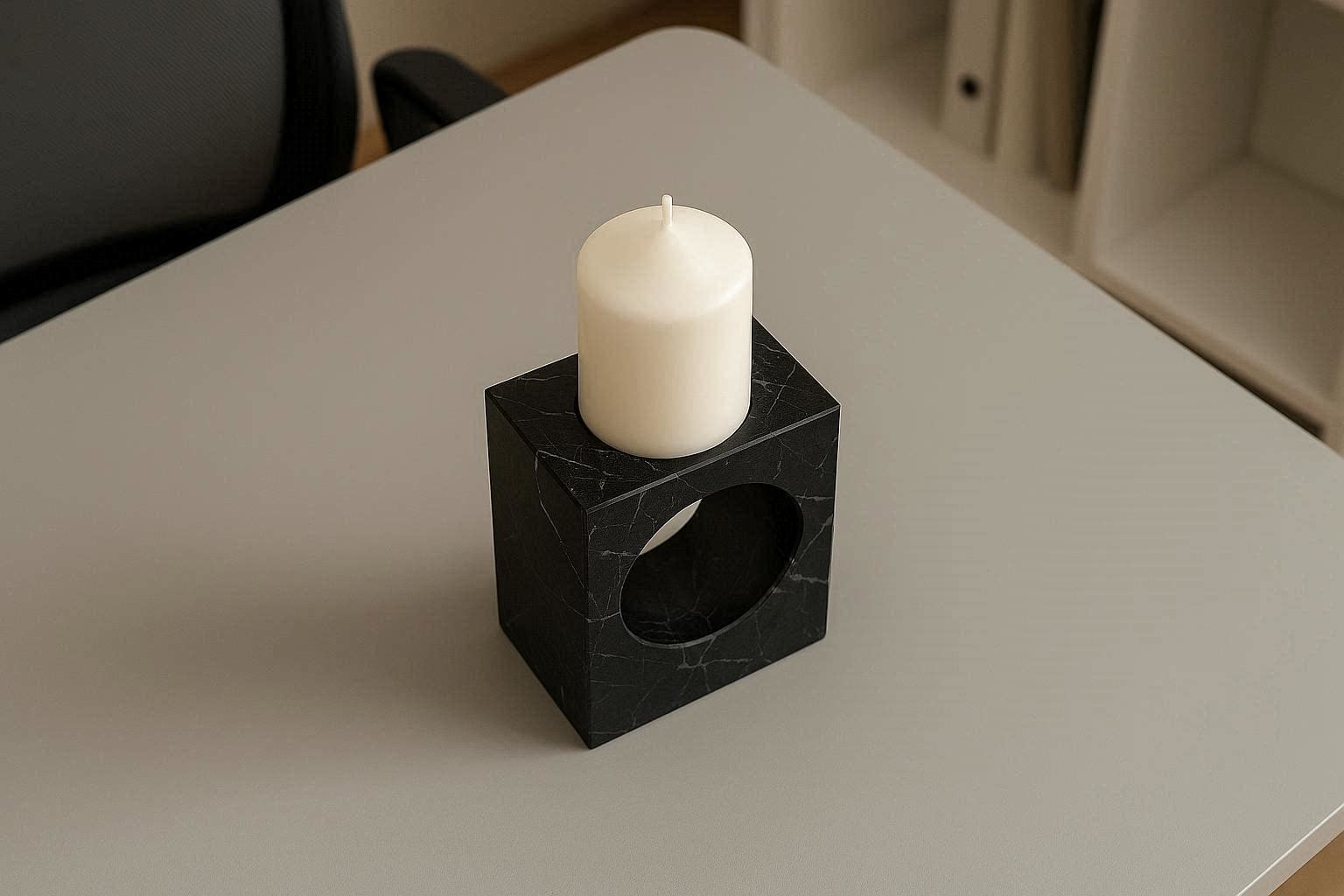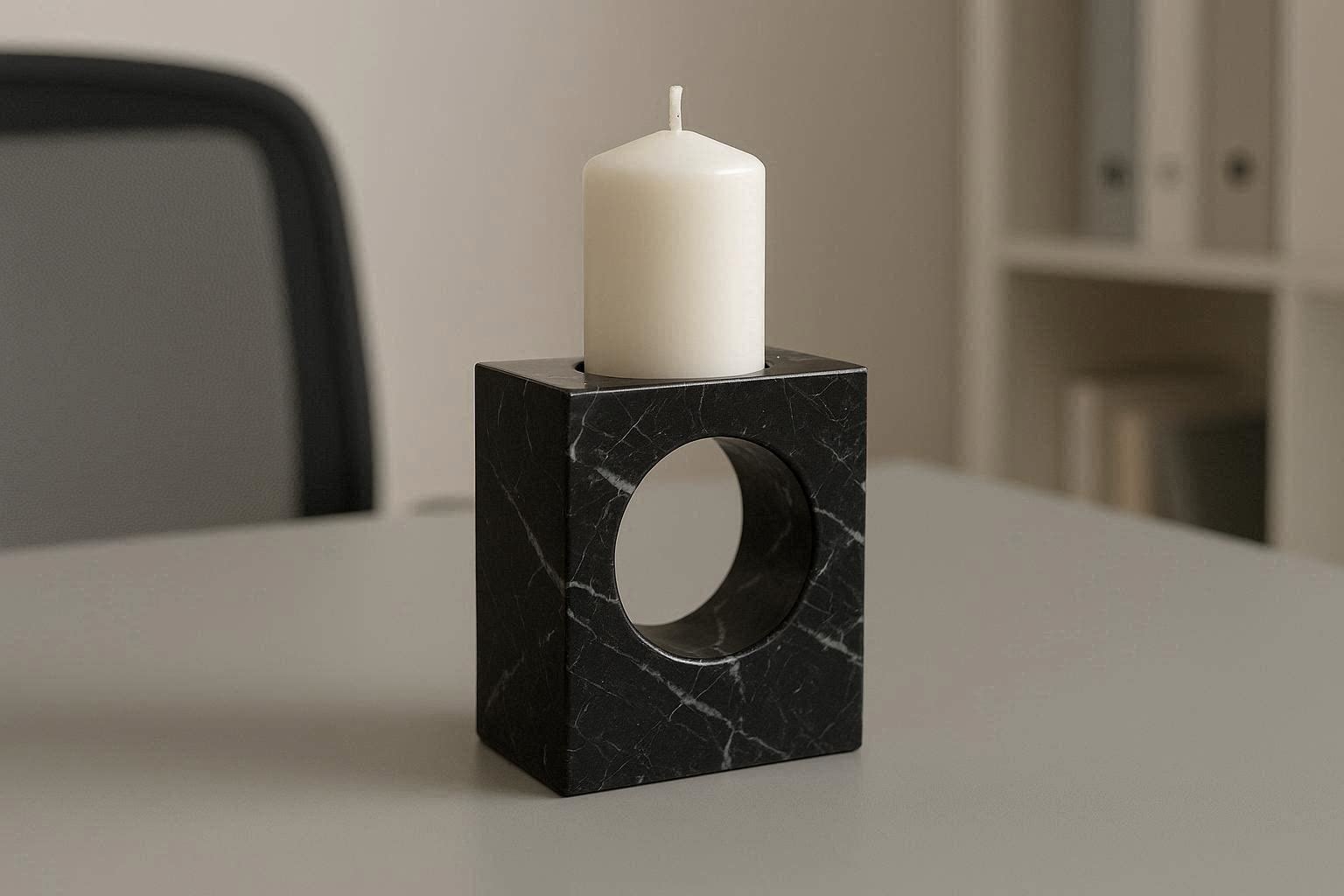 Made from genuine black marble with unique veining, each candle holder is a one of a kind piece that adds a touch of luxury to any office or home workspace. The polished surface is smooth to the touch and easy to clean, while the weighted base ensures stability. It is heat resistant and durable, making it suitable for daily use.