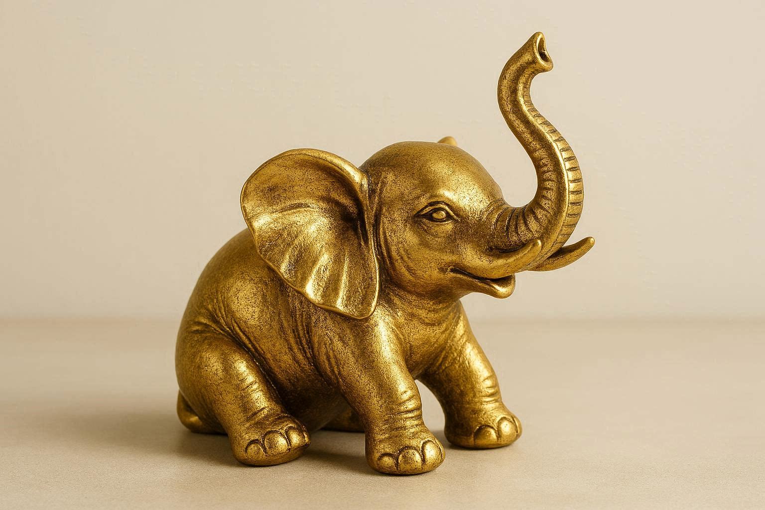 Symbolizing wisdom and good fortune, this elegant elephant figurine is crafted from zinc alloy with a polished gold finish. It stands 3 inches tall and features intricate trunk and tusk details. The weighted base provides excellent stability for display on shelves, entryway consoles, or office desks.