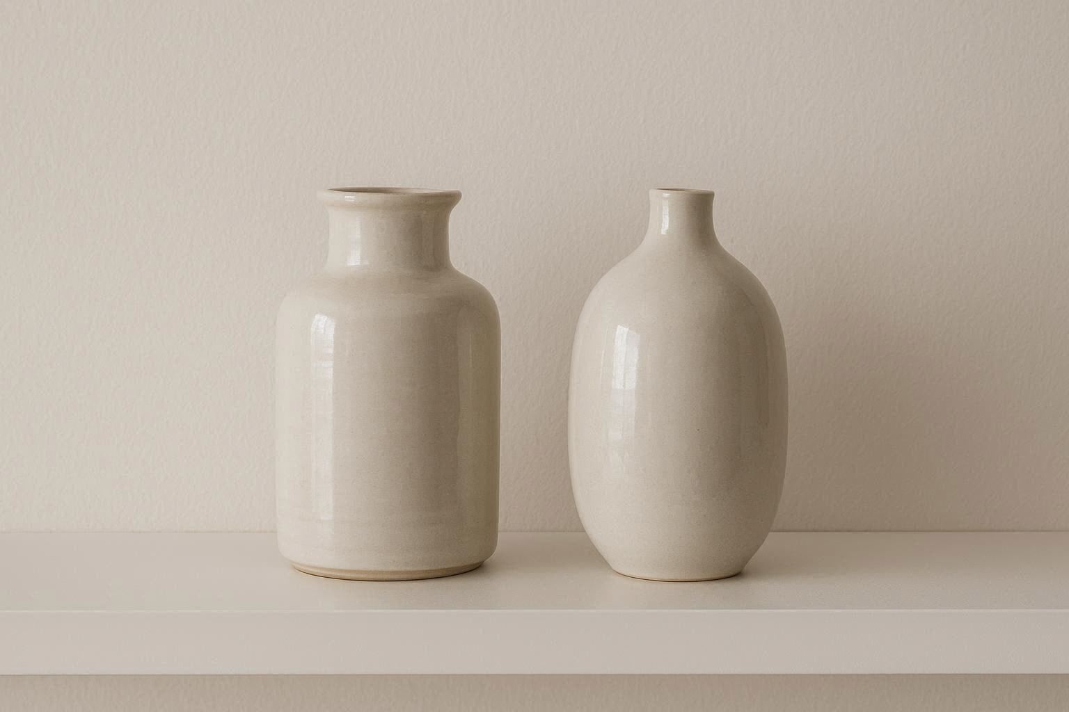 This curated set includes two complementary ceramic vases in matching glazes but differing forms??one tall and cylindrical, one short and rounded. The duo, standing at 6 and 9 inches respectively, is designed to create visual harmony and balance when styled together. They feature a sleek, high gloss glaze in versatile colors like cream, gray, or soft blue.